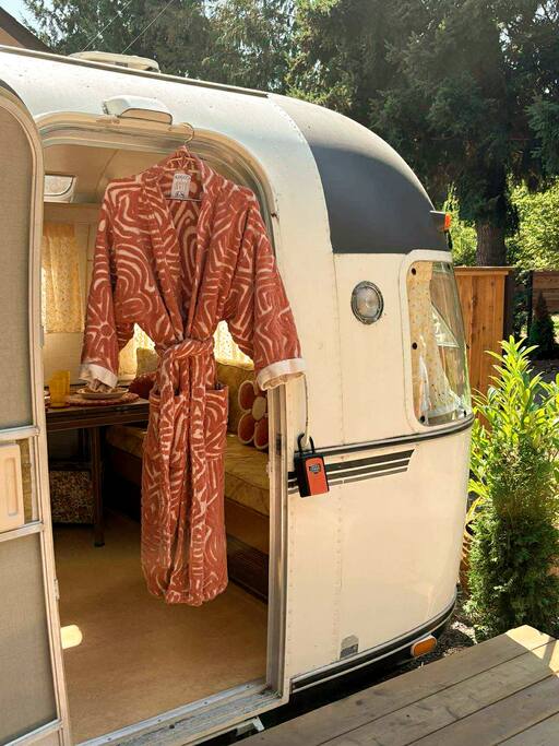 Camp Daisy! Sequim's Sweetest Airstream Argosy and the best, entirely private camping spot for the Olympic National Park. Welcome to our passion project, a completely restored and preserved '77 Airstream Argosy. Tucked in a forested corner of our plot, only 3/4 mile from downtown Sequim you'll get the BEST of camping without any of the worsts of camping. Spend evenings in the wood fire hot tub under the stars and slip into 100% cotton sheets on an oversized camper mattress & French Flax bedding.