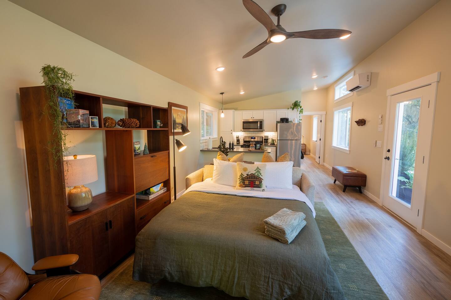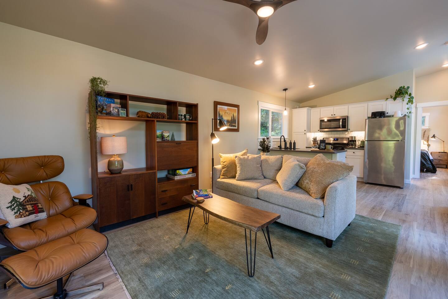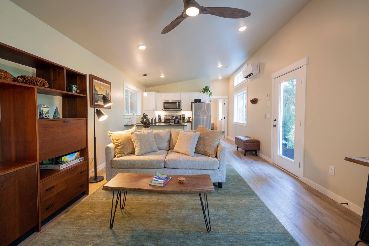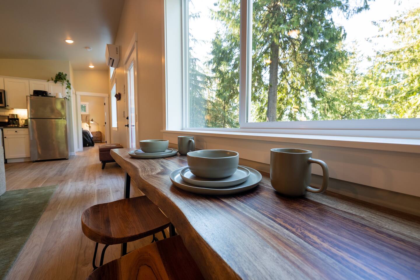 Stay atop the deer park foothills in this brand new tiny house boasting views of the Juan De Fuca straits with completely forested surroundings. With 1 bedroom, 1 bath and a living room that can be transformed into a queen sleeping arrangement, the Evergreen Incline hosts up to four. Enjoy your morning coffee on the front deck or in the 2 person hot tub. Thoughtfully decorated to bring the experience of nature inside, you’ll enjoy natural fiber 100% cotton sheets and cotton linen bedding.