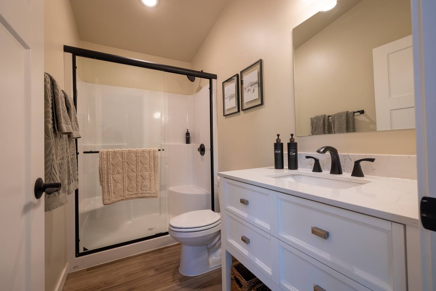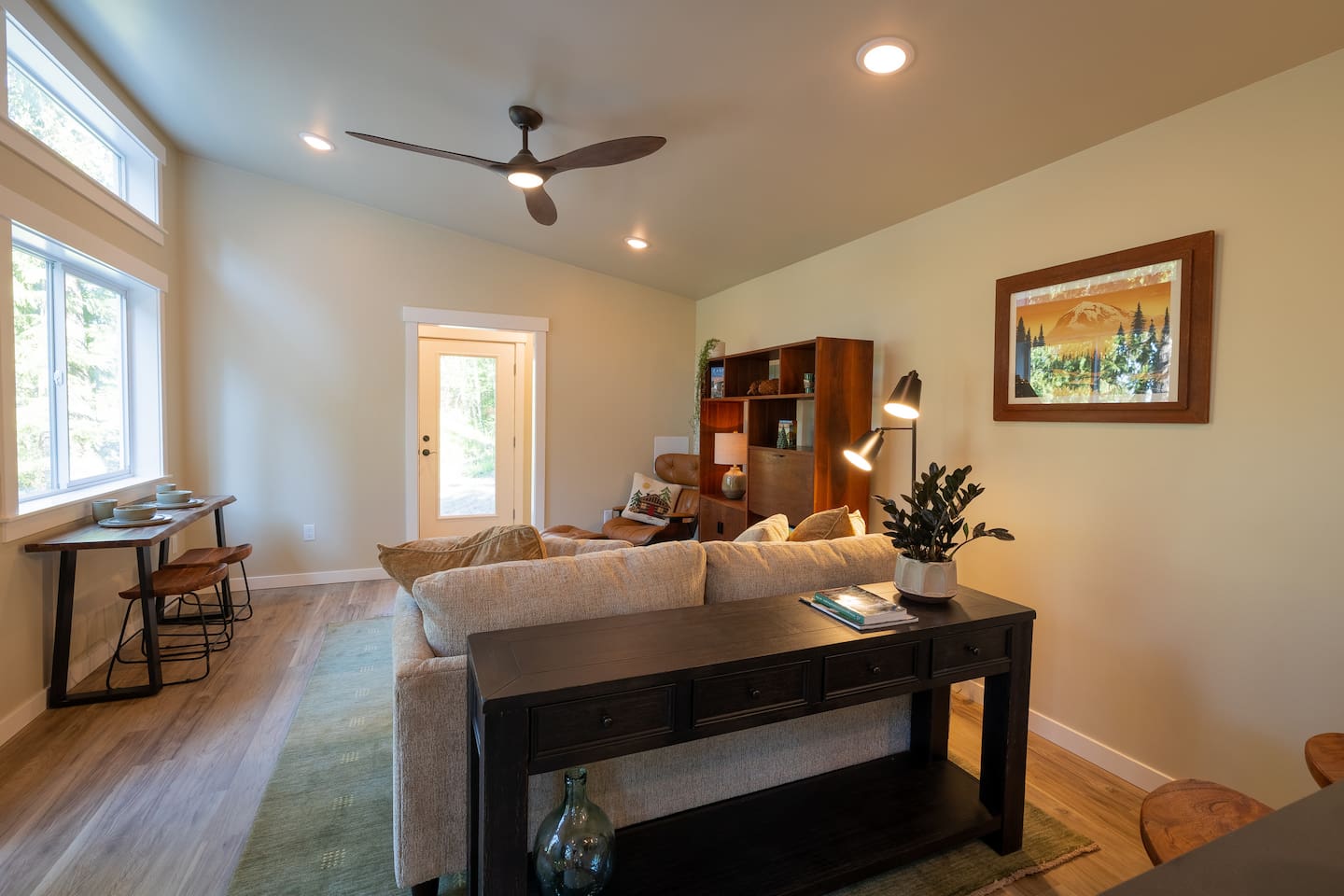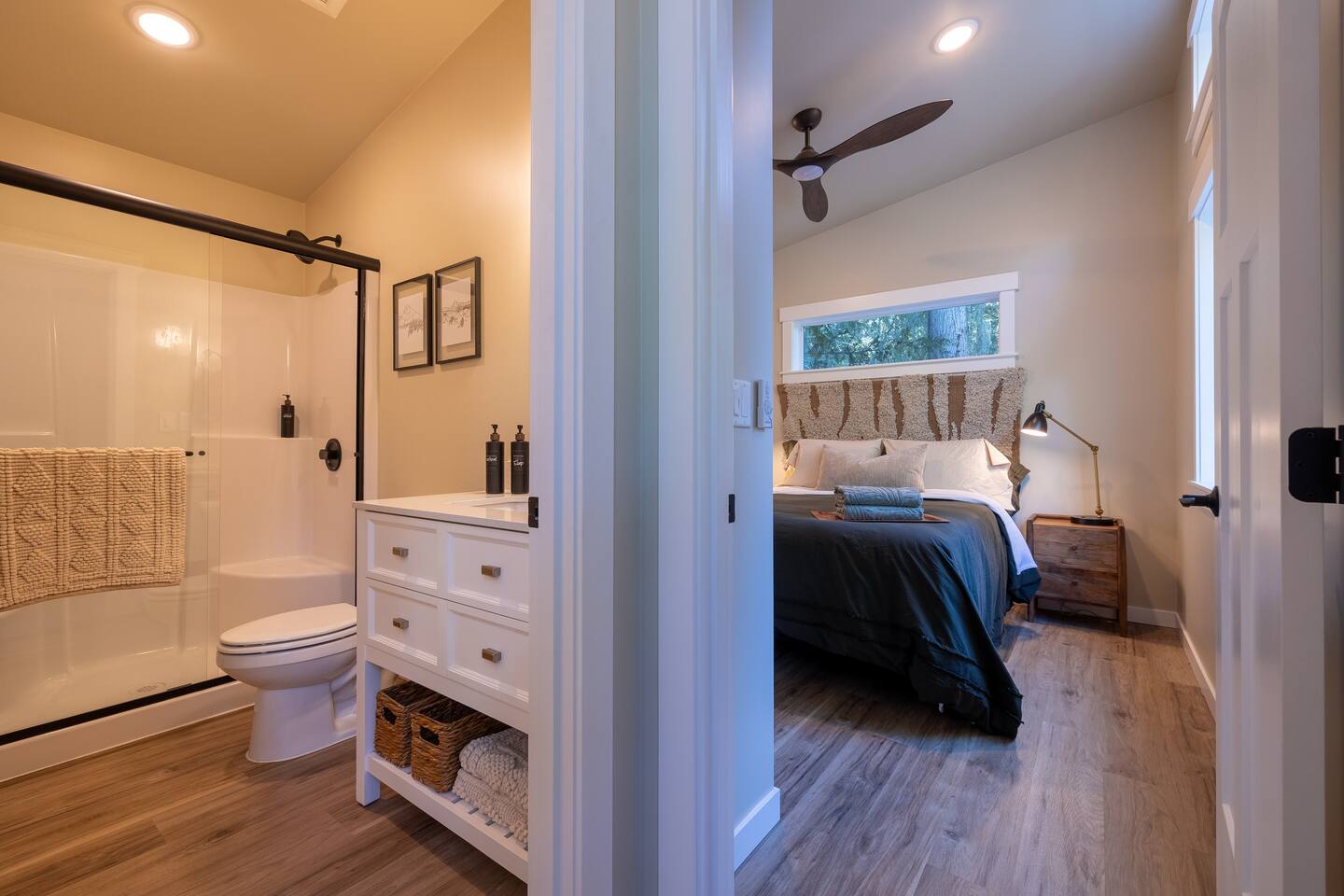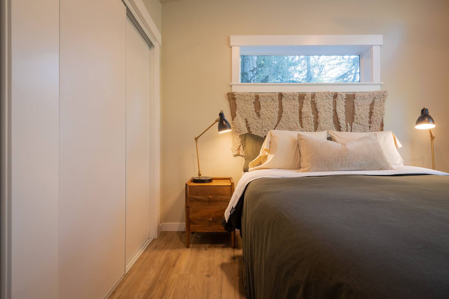 Stay atop the deer park foothills in this brand new tiny house boasting views of the Juan De Fuca straits with completely forested surroundings. With 1 bedroom, 1 bath and a living room that can be transformed into a queen sleeping arrangement, the Evergreen Incline hosts up to four. Enjoy your morning coffee on the front deck or in the 2 person hot tub. Thoughtfully decorated to bring the experience of nature inside, you’ll enjoy natural fiber 100% cotton sheets and cotton linen bedding.