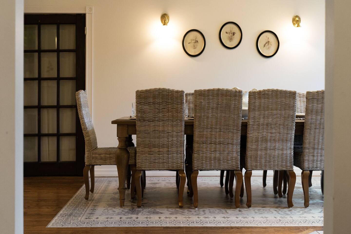 Dining Room - Our dining room has seating and settings for 10, but there are also 2 bar stools at the kitchen counter that is within arms reach of the table. There is also one desk chair in a small alcove section of the kitchen. You'll also be pleased to know we have a highchair on location for your convenience. Whether your style is true antique, durable stoneware or kid friendly bamboo we've got you covered. Wine glasses, water glasses, coffee mugs - no one will be without a yummy drink, which reminds me - the water is pristine and delicious to drink straight from the tap! Enjoy the mountain water.