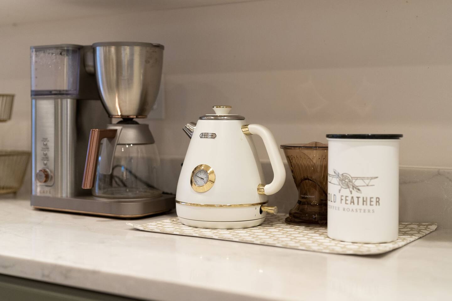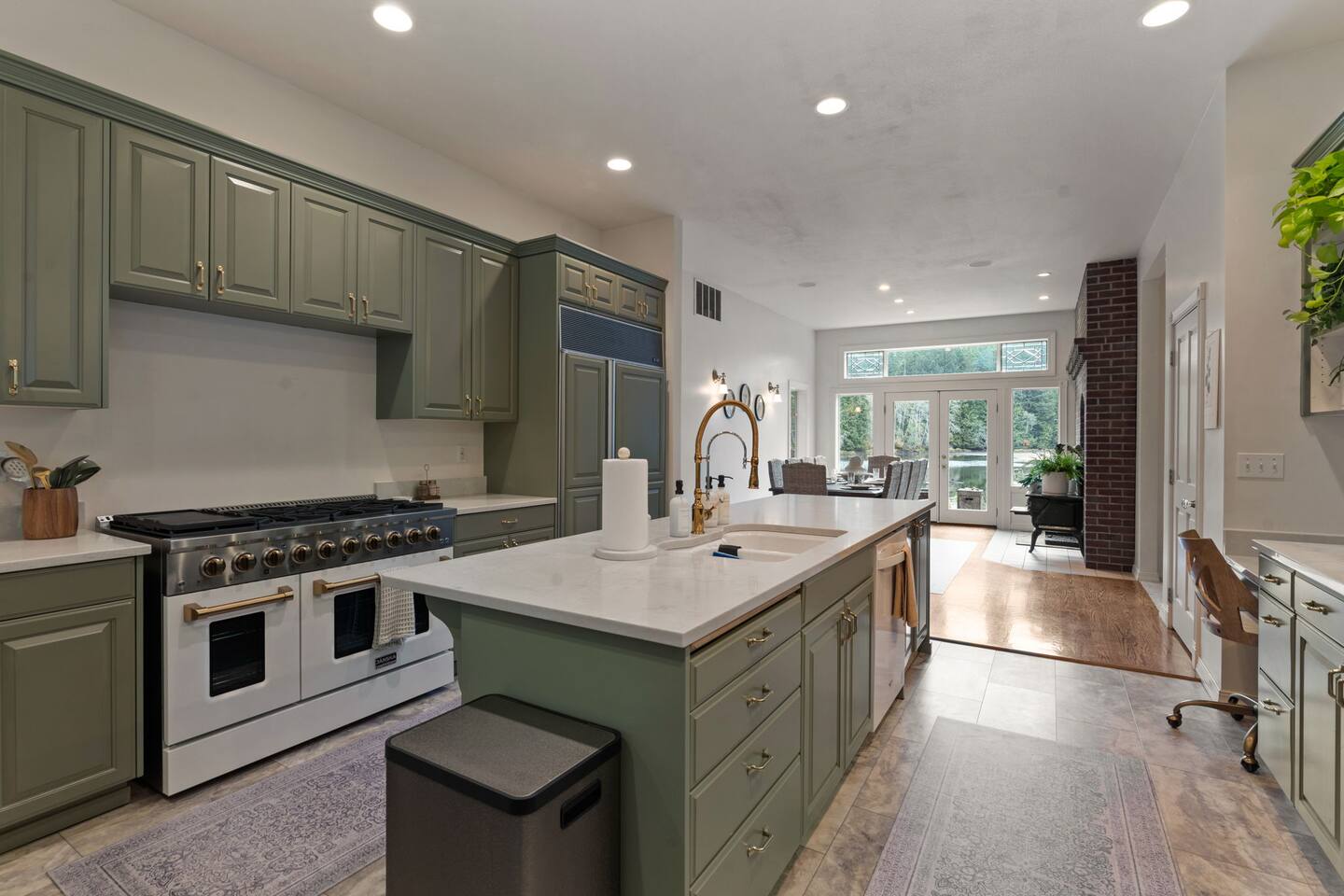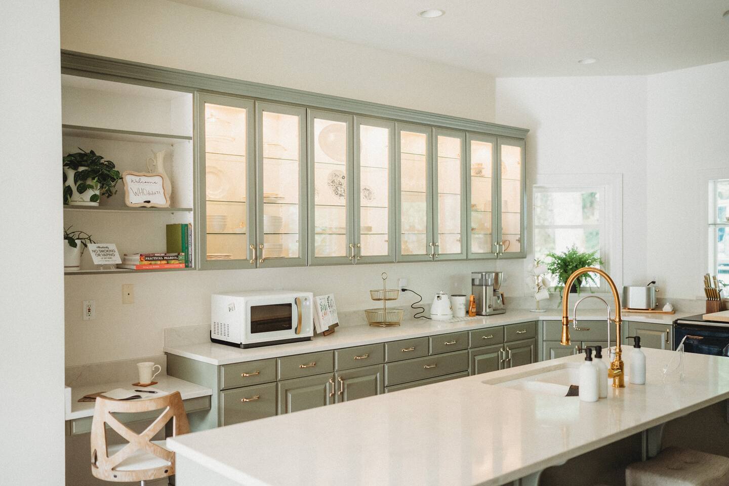 Kitchen - The Kitchen may be the star of the show. Completely remodeled with new countertops, sink, dishwasher, painted cabinets, you'll enjoy our Swedish Janska Oven with 8 gas burners, Easy use Griddle, and two oven compartments with lots of easy pull out oven racks. Enjoy our non-stick Greenpan pots and pans set as well as a full array of baking pans, sheets, utensils and more! Don't hesitate to reach out if you have questions about a specific kitchen item - we know if you're booking here, you love to cook! The kitchen also hosts a 10 cup coffee maker, locally roasted ground coffee, tea kettle, toaster, microwave and all the additional tools you could want to make a beautiful, delicious meal.