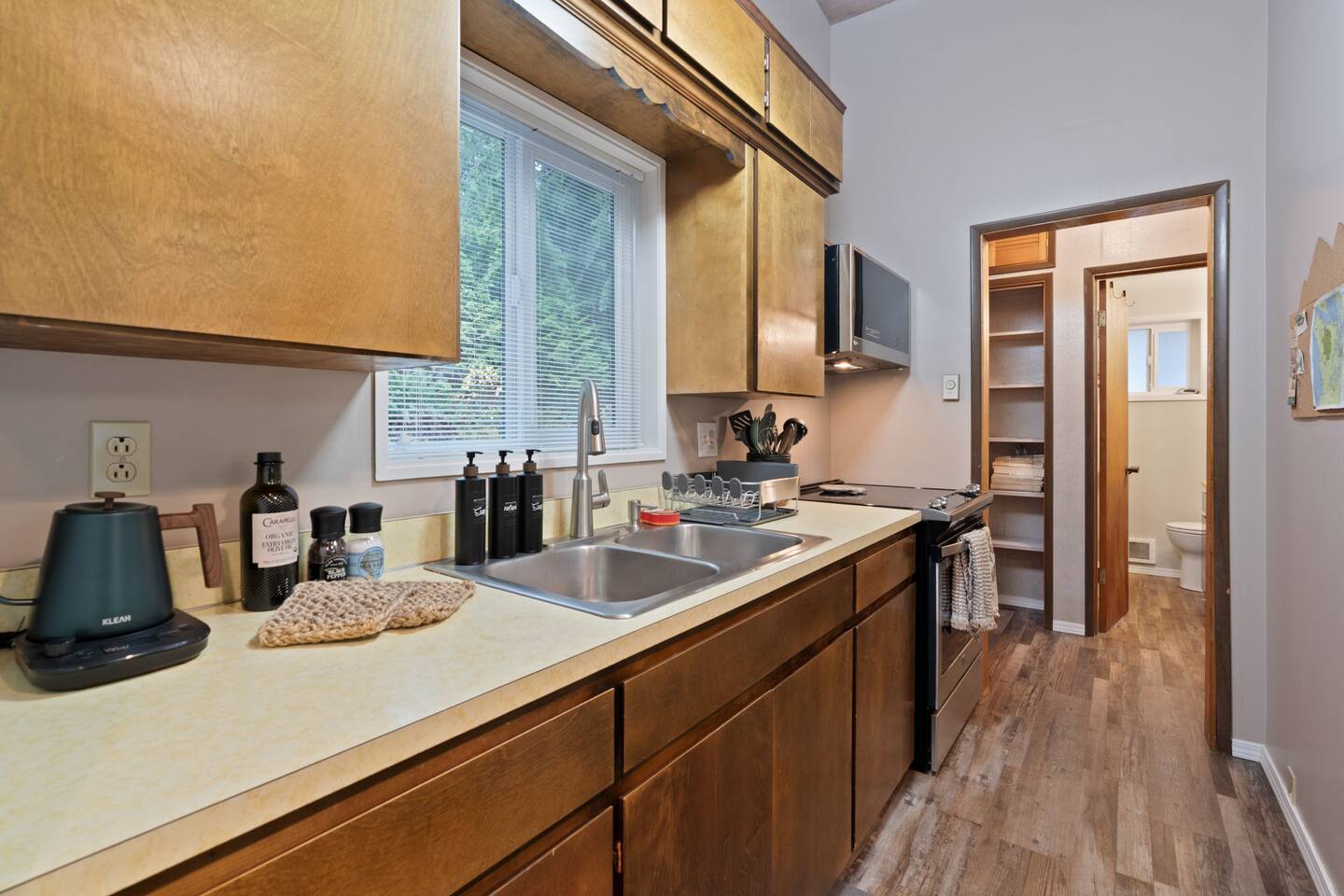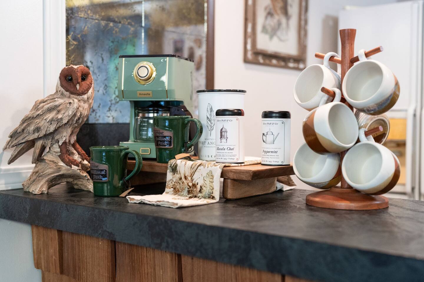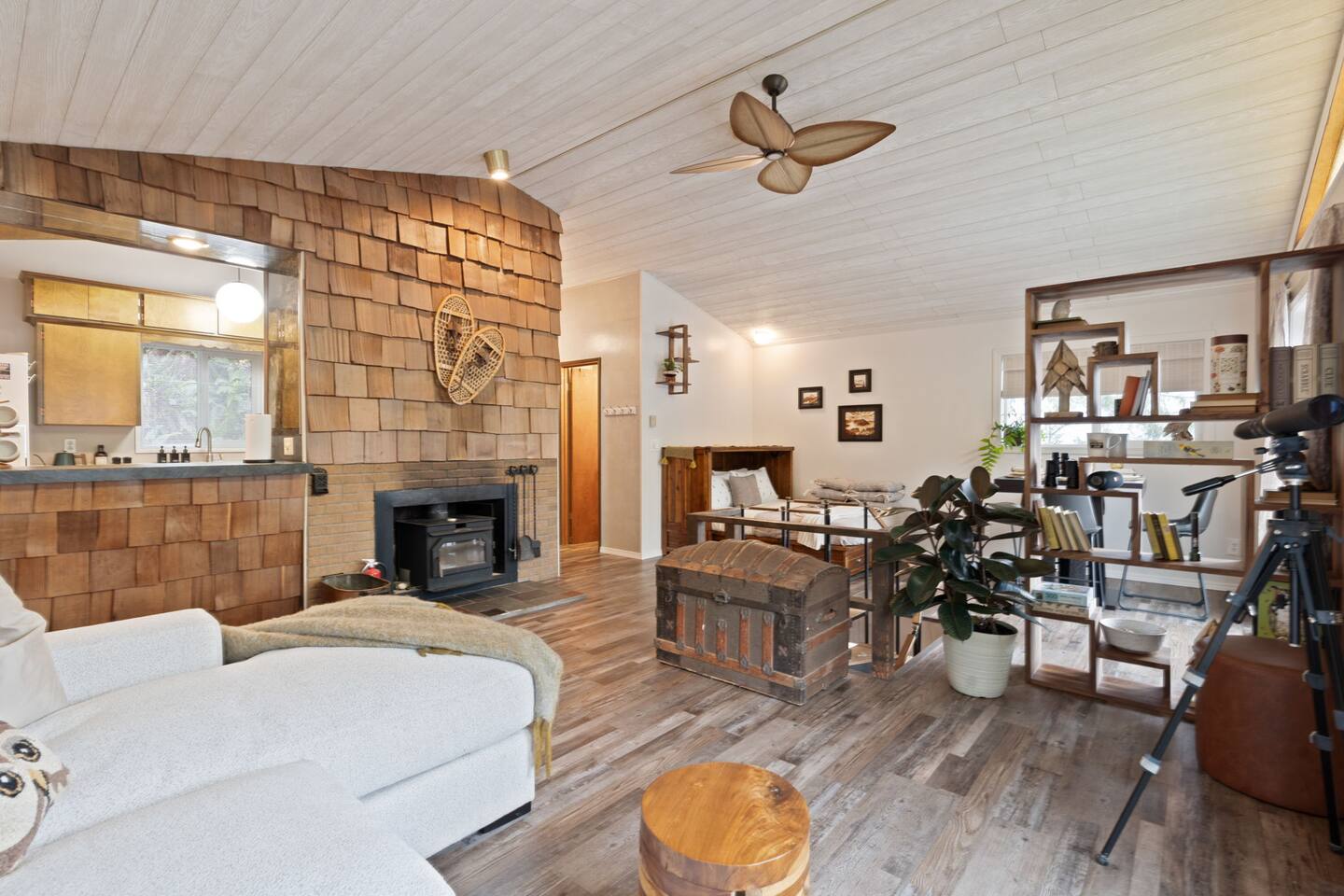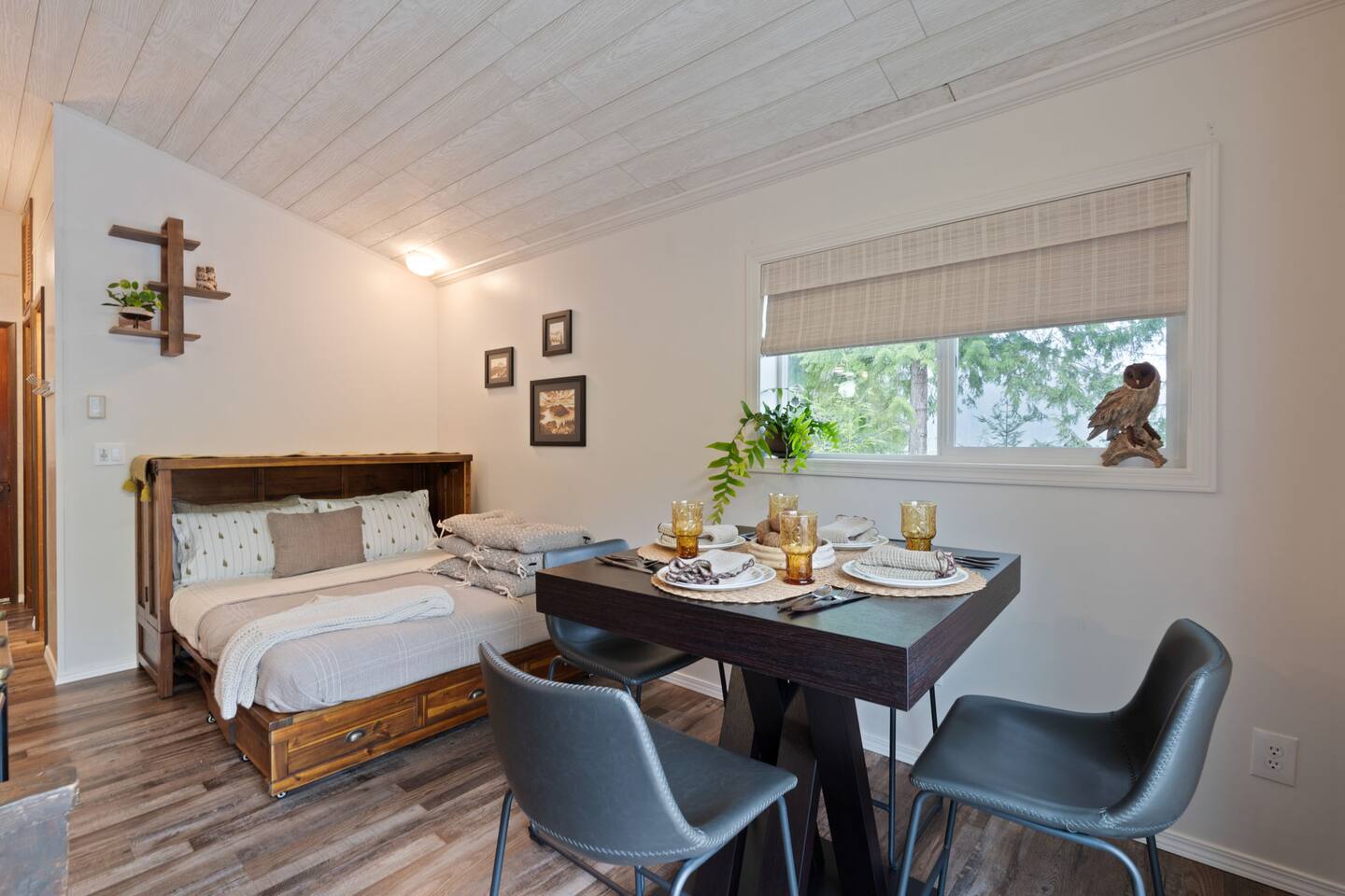 Nestled into the Olympic National Forest, perched on the edge of Lake Sutherland - you’ll find yourself in awe of the views of a seemingly live and ever changing painting just out the large lake facing windows of Owl Pine. Minutes walk down to private beachfront with large dock and fire pit surrounded by comfy Adirondacks, you’ll be entertained inside or out with this whimsical cabin full of games, puzzles and an unforgettable night sky! AWD + Carrying Chains required in Winter.